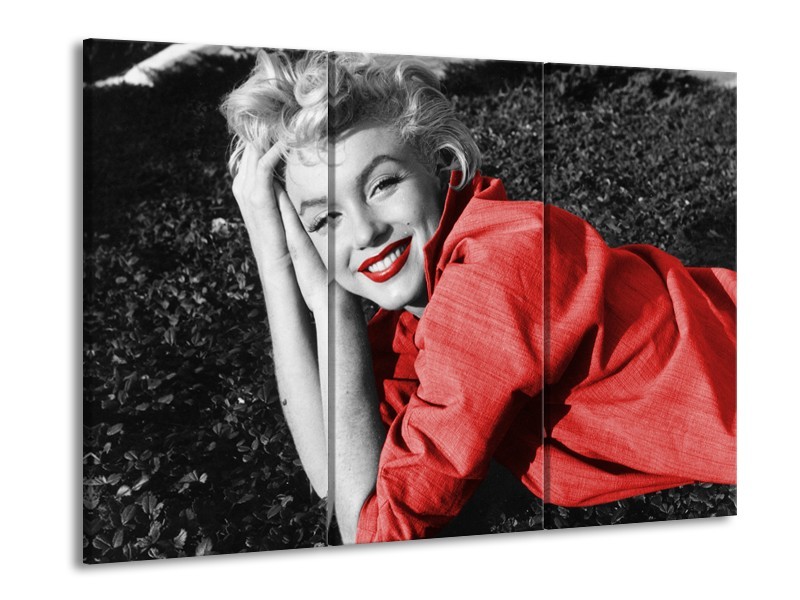 Canvas Schilderij Marilyn Monroe | Zwart, Rood, Grijs | 60x90cm 3Luik