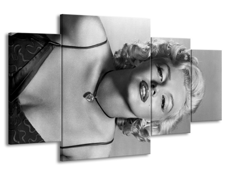 Canvas Schilderij Marilyn Monroe | Zwart, Wit, Grijs | 160x90cm 4Luik