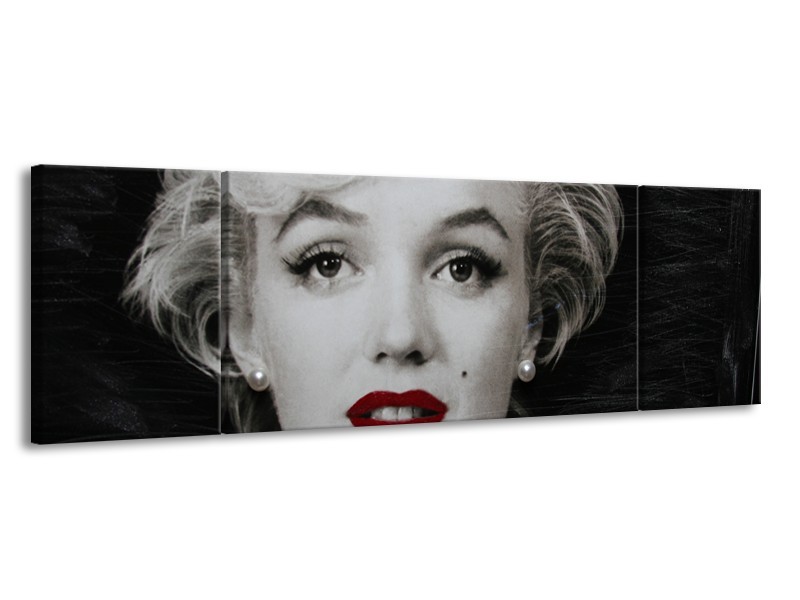 Canvas Schilderij Marilyn Monroe | Zwart, Wit, Grijs | 170x50cm 3Luik