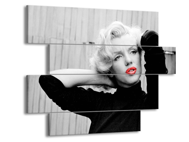 Canvas Schilderij Marilyn Monroe | Zwart, Wit, Rood | 115x85cm 4Luik