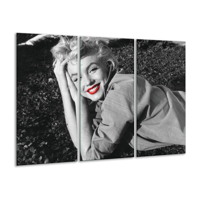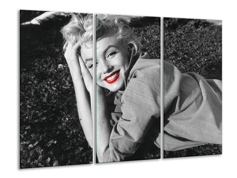 Canvas Schilderij Marilyn Monroe | Zwart, Wit, Rood | 120x80cm 3Luik