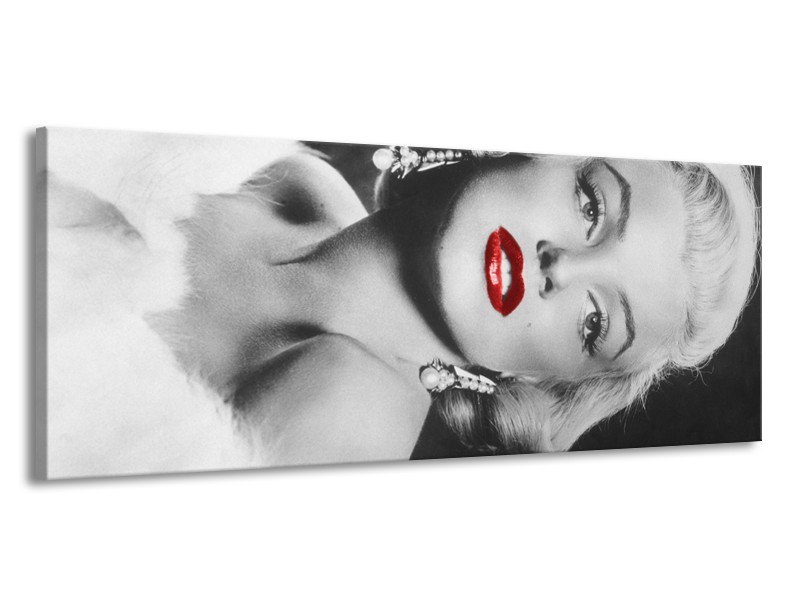 Canvas Schilderij Marilyn Monroe | Zwart, Wit, Rood | 145x58cm 1Luik