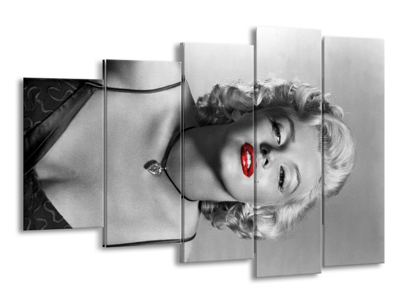 Canvas Schilderij Marilyn Monroe | Zwart, Wit, Rood | 150x100cm 5Luik