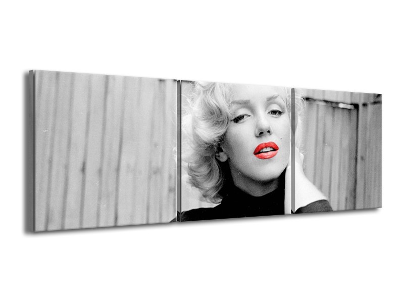 Canvas Schilderij Marilyn Monroe | Zwart, Wit, Rood | 150x50cm 3Luik