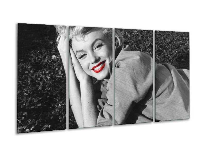 Canvas Schilderij Marilyn Monroe | Zwart, Wit, Rood | 160x80cm 4Luik