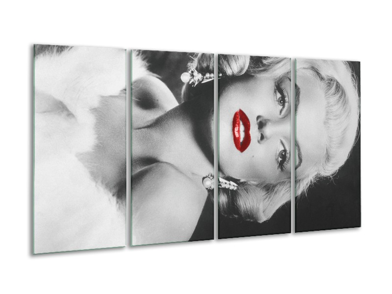 Canvas Schilderij Marilyn Monroe | Zwart, Wit, Rood | 160x80cm 4Luik