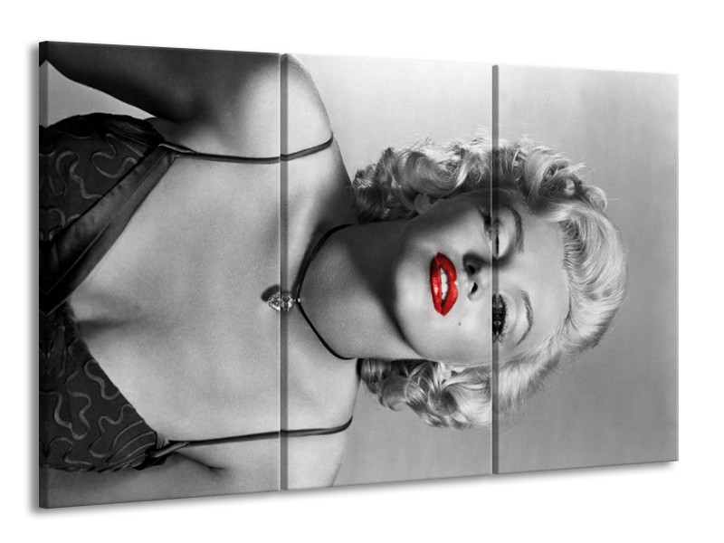 Canvas Schilderij Marilyn Monroe | Zwart, Wit, Rood | 165x100cm 3Luik