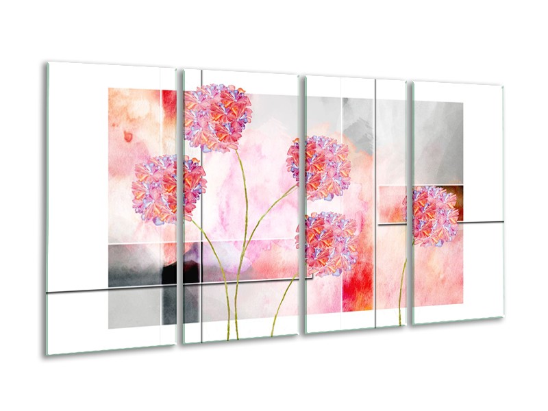 Canvas Schilderij Modern, Bloemen | Grijs, Roze | 160x80cm 4Luik