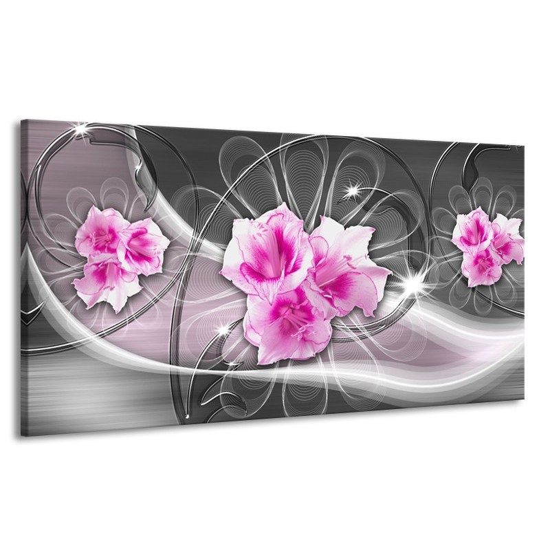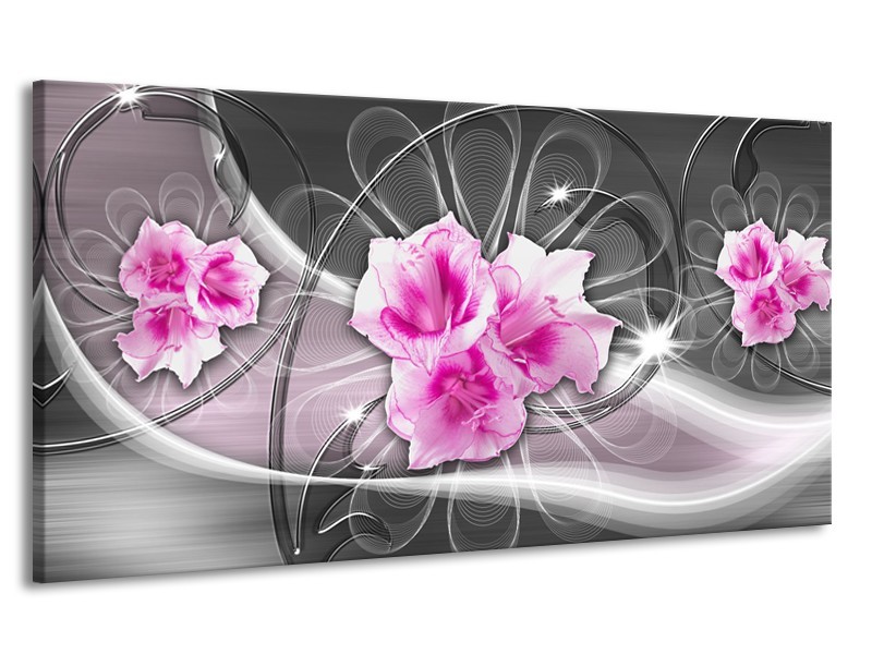 Canvas Schilderij Modern, Bloemen | Grijs, Roze | 170x90cm 1Luik