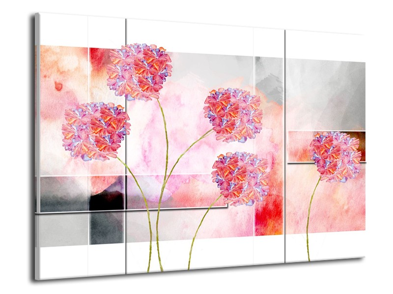 Canvas Schilderij Modern, Bloemen | Grijs, Roze | 70x50cm 1Luik