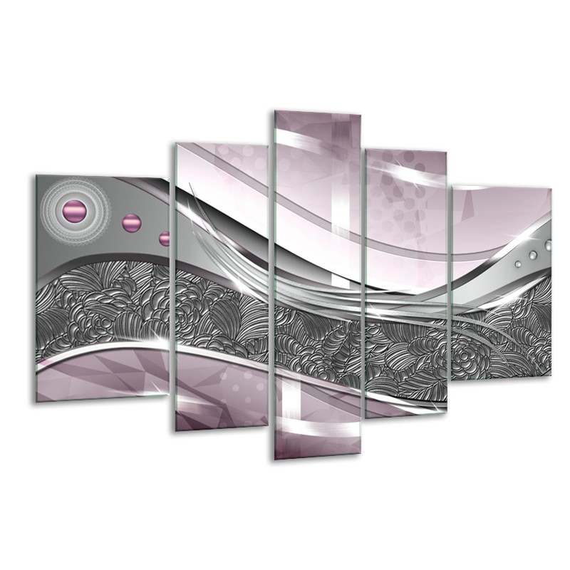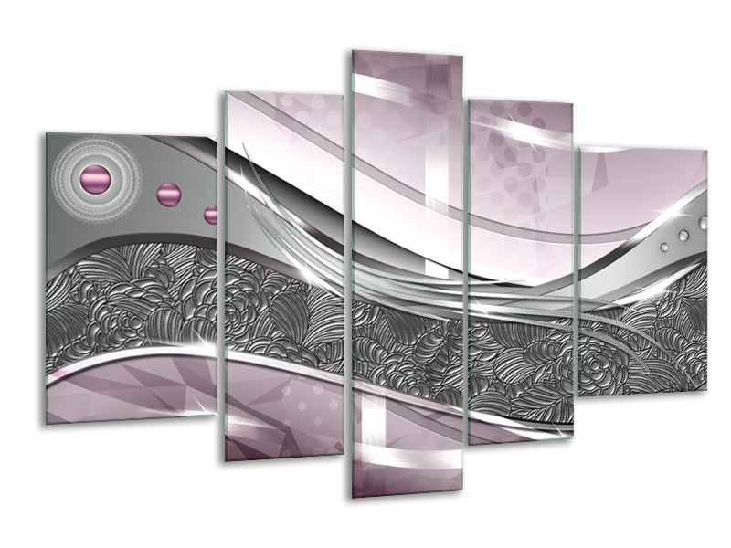 Canvas Schilderij Modern, Design | Grijs, Paars, Roze | 170x100cm 5Luik