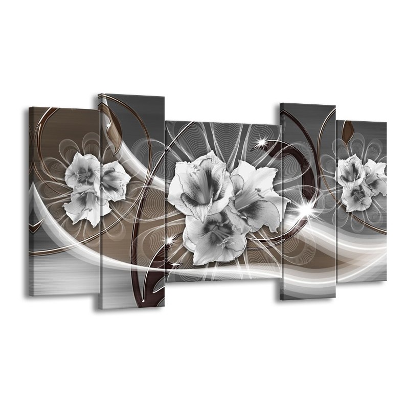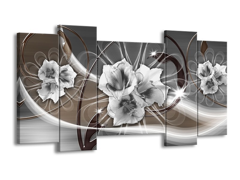 Canvas Schilderij Modern | Grijs, Bruin | 120x65cm 5Luik