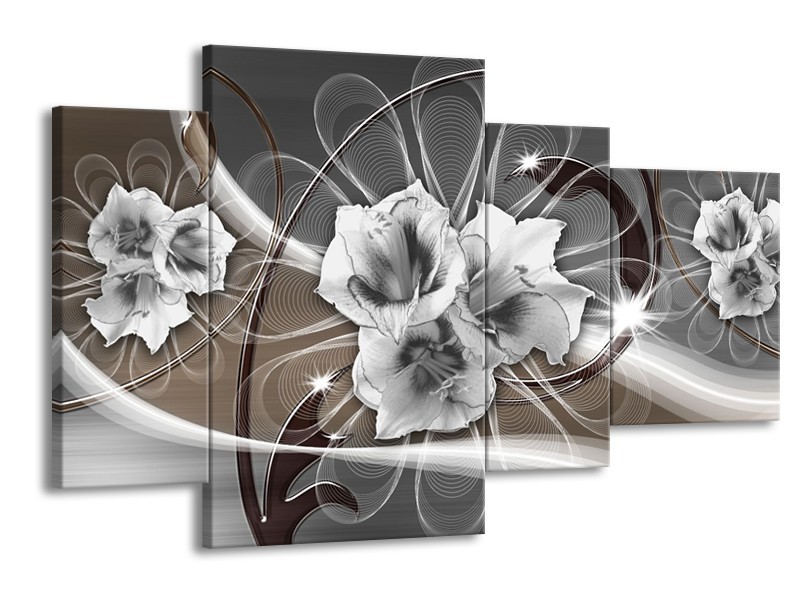 Canvas Schilderij Modern | Grijs, Bruin | 120x75cm 4Luik