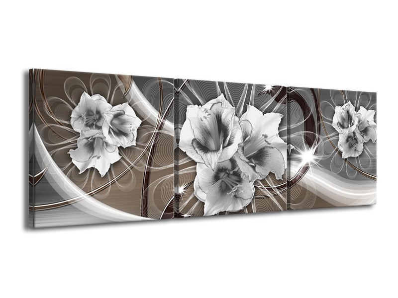 Canvas Schilderij Modern | Grijs, Bruin | 150x50cm 3Luik
