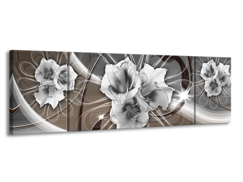 Canvas Schilderij Modern | Grijs, Bruin | 170x50cm 3Luik