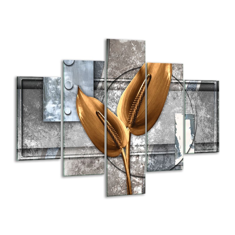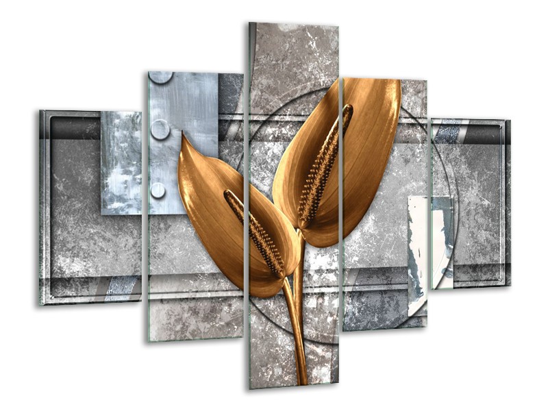 Canvas Schilderij Modern | Grijs, Goud | 100x70cm 5Luik