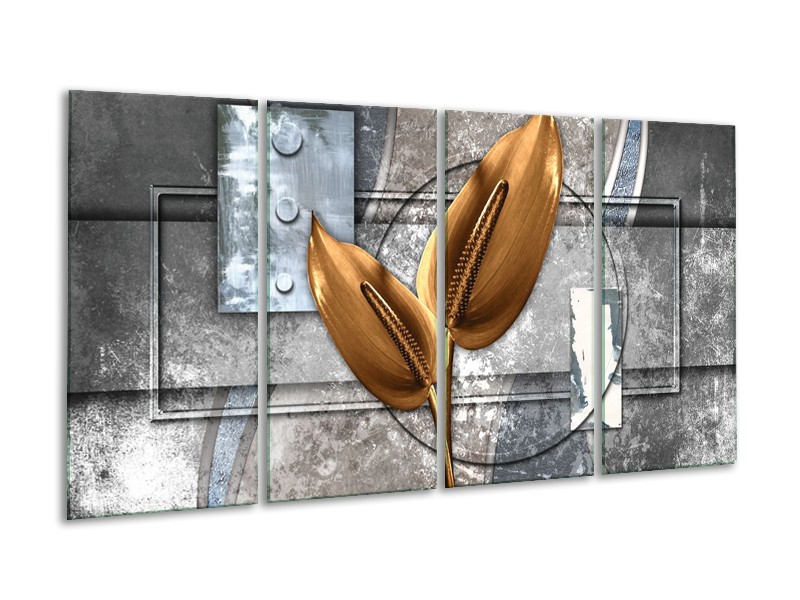 Canvas Schilderij Modern | Grijs, Goud | 160x80cm 4Luik