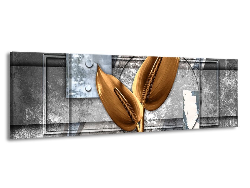 Canvas Schilderij Modern | Grijs, Goud | 170x50cm 3Luik