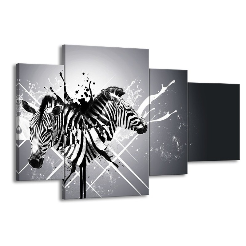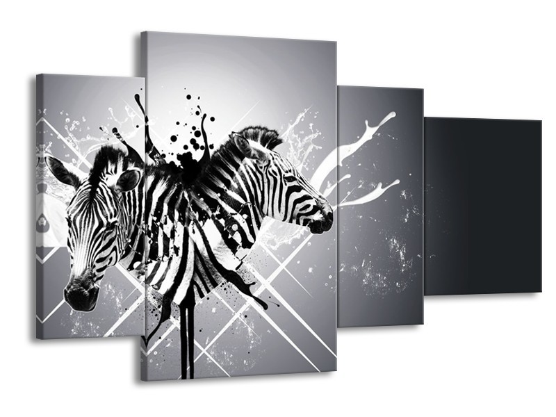 Canvas Schilderij Modern, Zebra | Zwart, Wit, Grijs | 120x75cm 4Luik