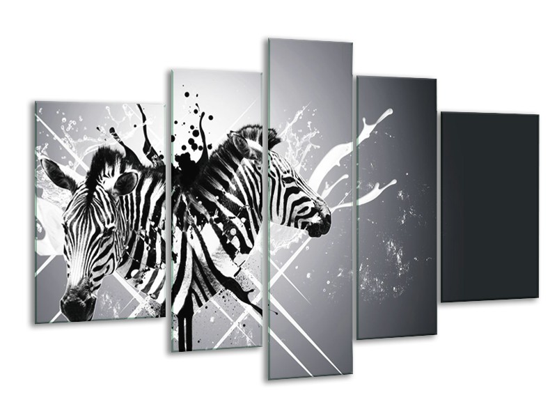 Canvas Schilderij Modern, Zebra | Zwart, Wit, Grijs | 170x100cm 5Luik