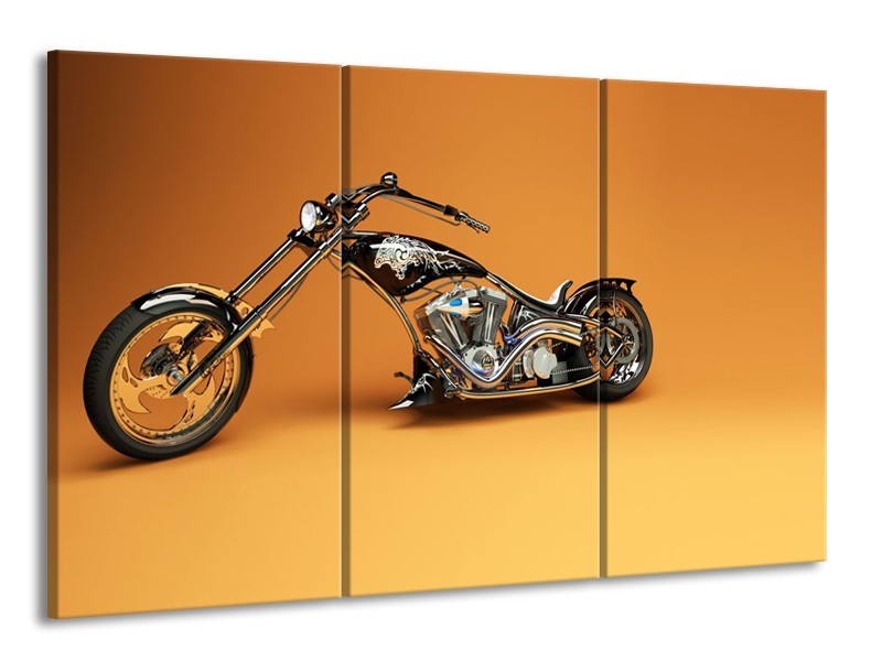 Canvas Schilderij Motor | Bruin, Geel, Oranje | 165x100cm 3Luik