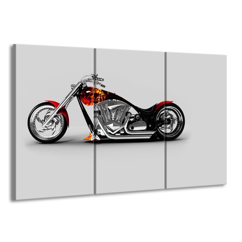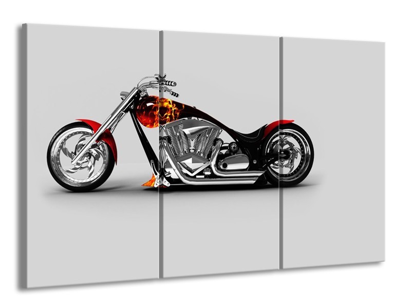 Canvas Schilderij Motor | Grijs, Zwart, Oranje | 165x100cm 3Luik