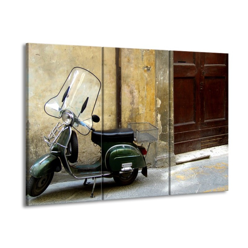 Canvas Schilderij Motor, Scooter | Bruin, Geel, Groen | 60x90cm 3Luik
