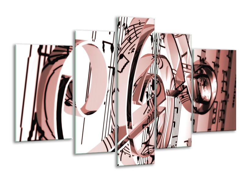 Canvas Schilderij Muziek | Bruin, Rood | 170x100cm 5Luik