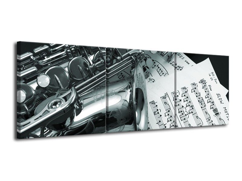 Canvas Schilderij Muziek | Grijs, Groen, Zilver | 120x40cm 3Luik
