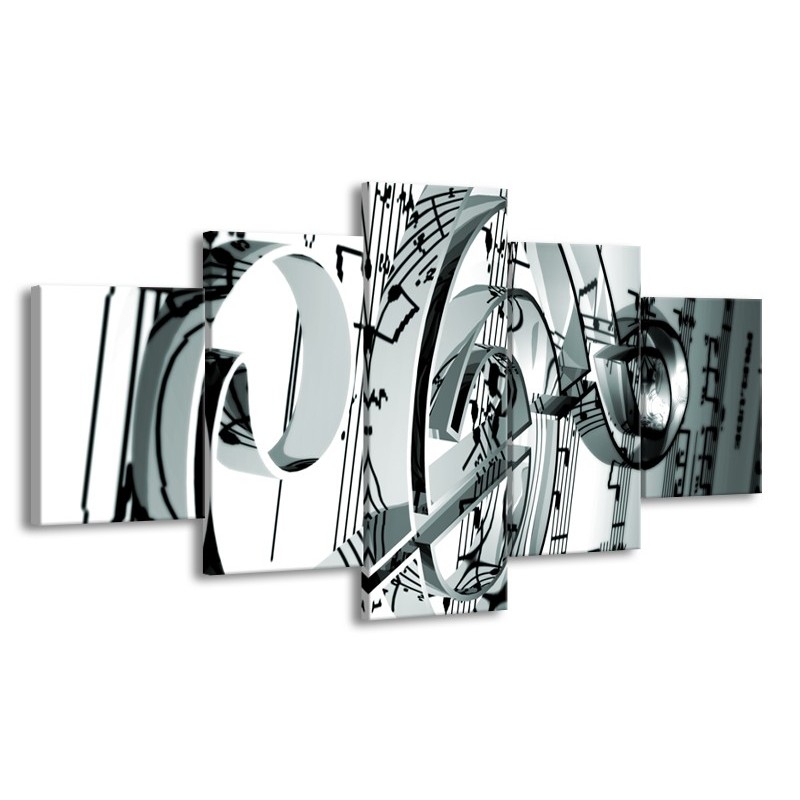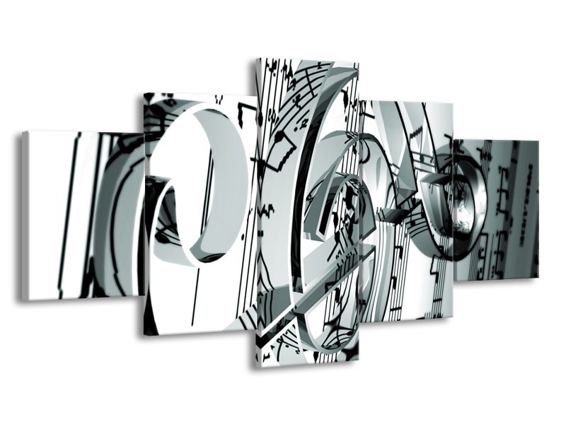 Canvas Schilderij Muziek | Grijs, Wit, Groen | 150x80cm 5Luik