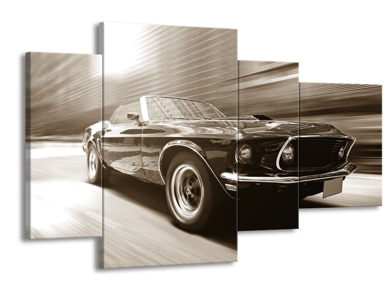 Canvas Schilderij Muziek, Mustang | Sepia | 120x75cm 4Luik