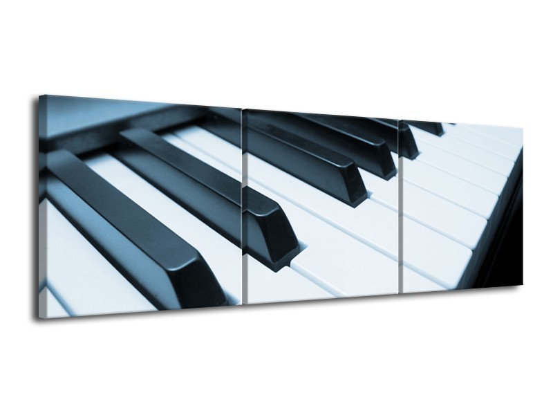 Canvas Schilderij Muziek, Piano | Blauw, Grijs | 120x40cm 3Luik