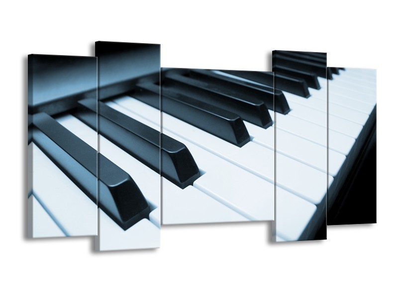 Canvas Schilderij Muziek, Piano | Blauw, Grijs | 120x65cm 5Luik