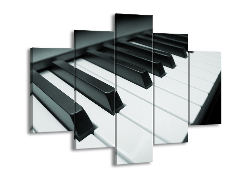 Canvas Schilderij Muziek, Piano | Grijs, Groen, Zwart | 150x105cm 5Luik