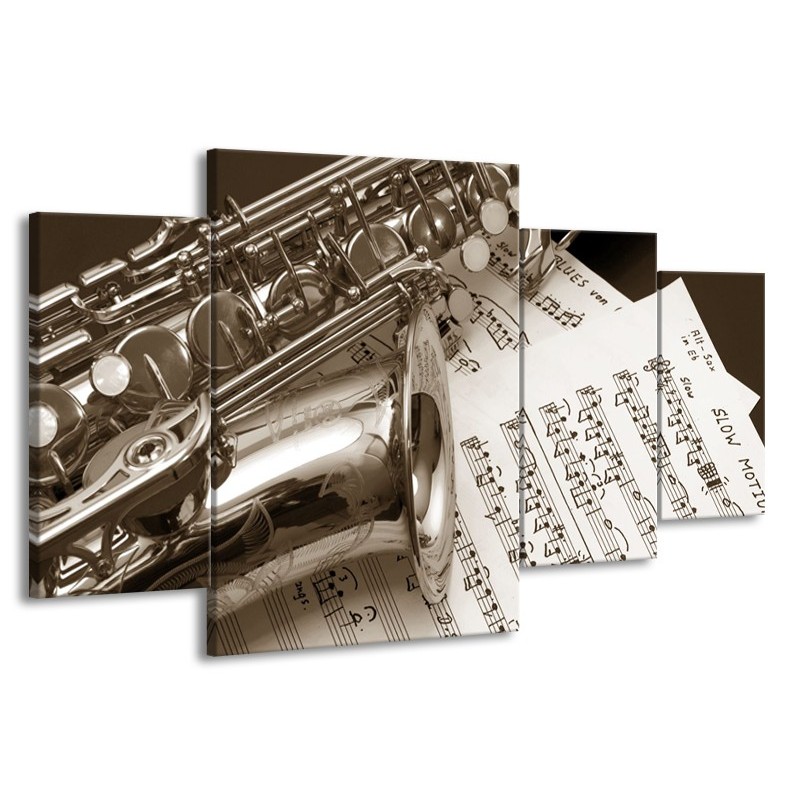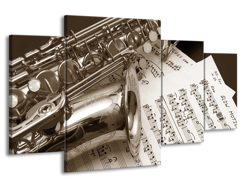 Canvas Schilderij Muziek | Sepia | 160x90cm 4Luik