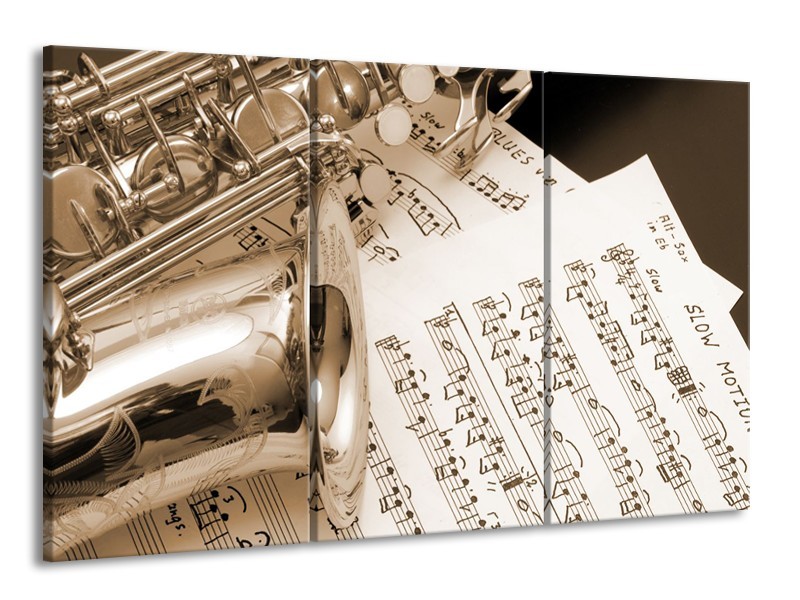 Canvas Schilderij Muziek | Sepia | 165x100cm 3Luik