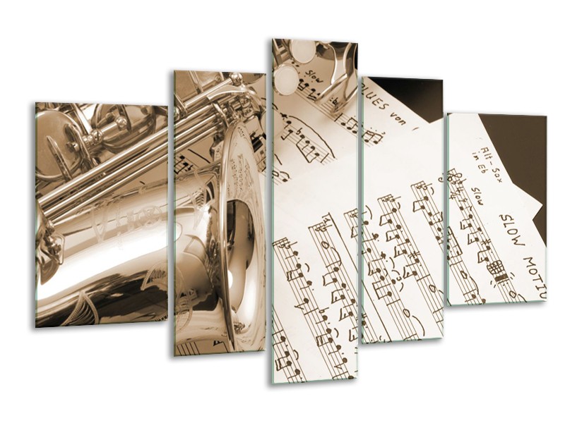 Canvas Schilderij Muziek | Sepia | 170x100cm 5Luik