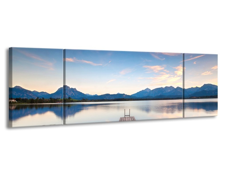 Canvas Schilderij Natuur, Bergen | Blauw, Grijs, Groen | 170x50cm 3Luik