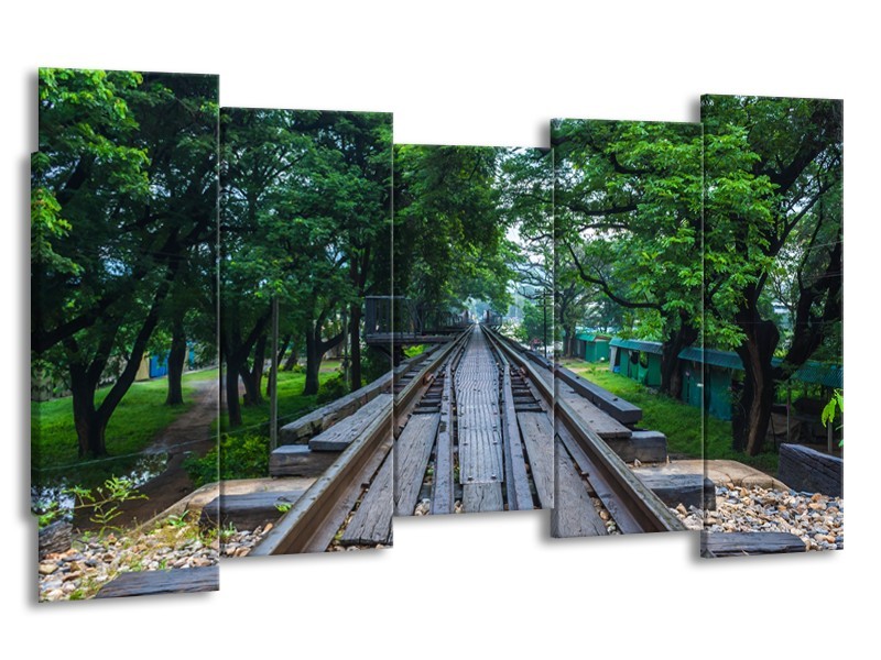 Canvas Schilderij Natuur, Bos | Groen, Grijs | 150x80cm 5Luik