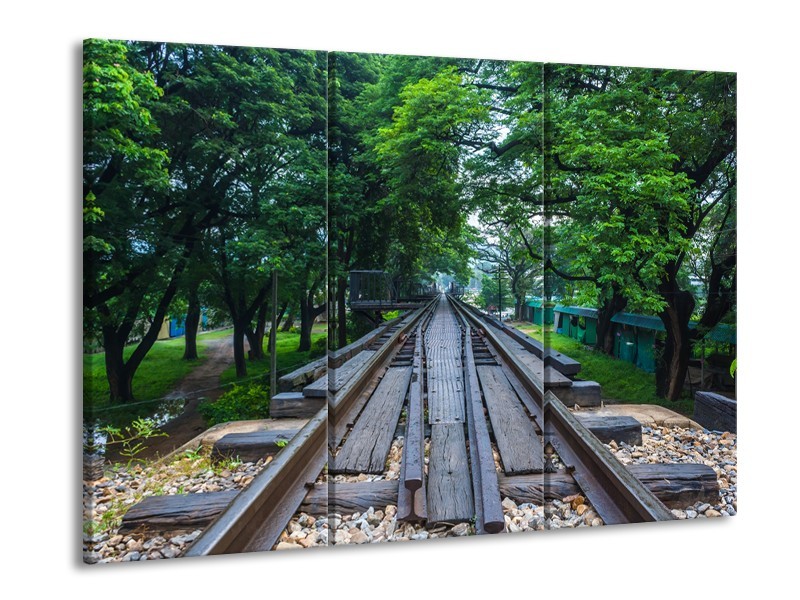 Canvas Schilderij Natuur, Bos | Groen, Grijs | 60x90cm 3Luik
