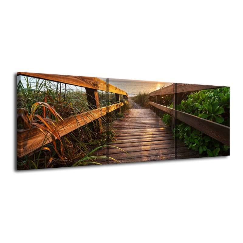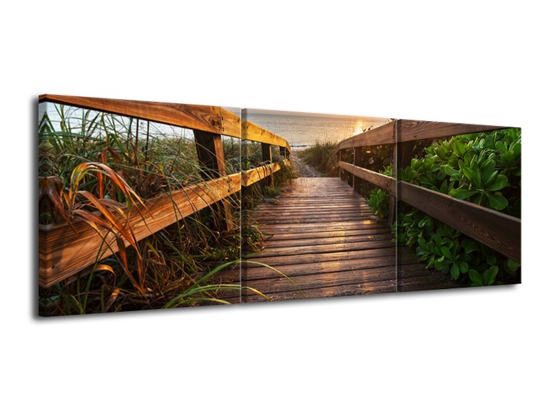 Canvas Schilderij Natuur, Brug | Bruin, Groen | 120x40cm 3Luik