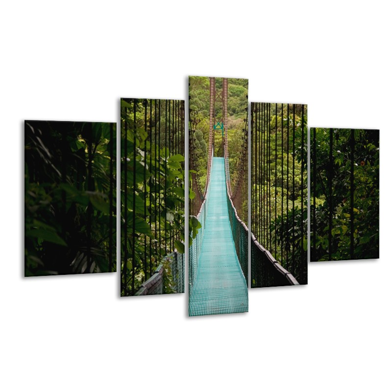 Canvas Schilderij Natuur, Brug | Groen, Blauw, Zwart | 170x100cm 5Luik