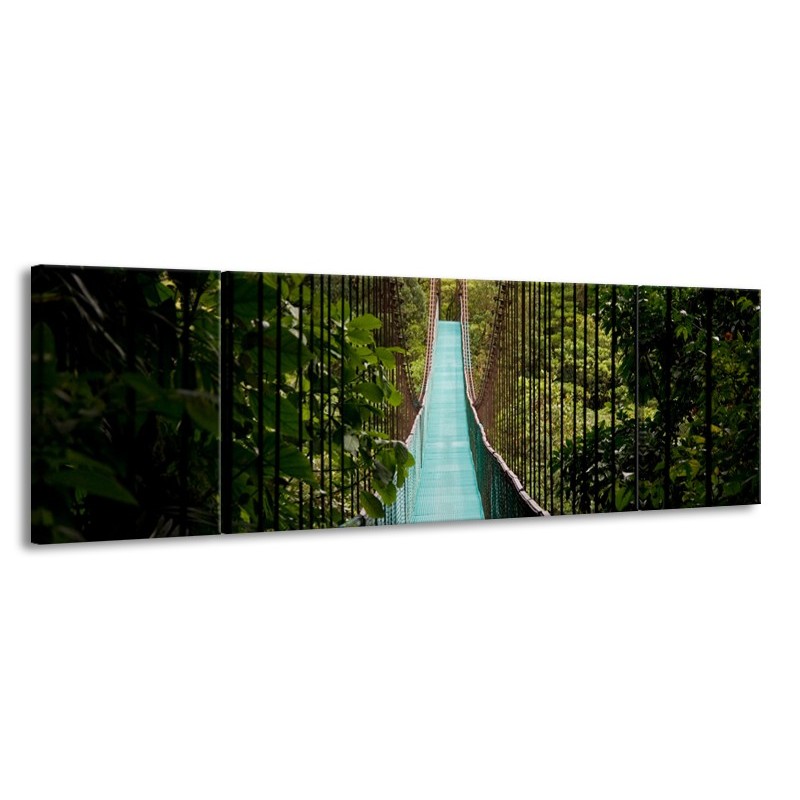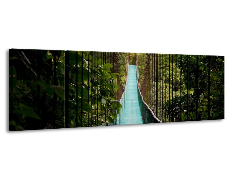 Canvas Schilderij Natuur, Brug | Groen, Blauw, Zwart | 170x50cm 3Luik
