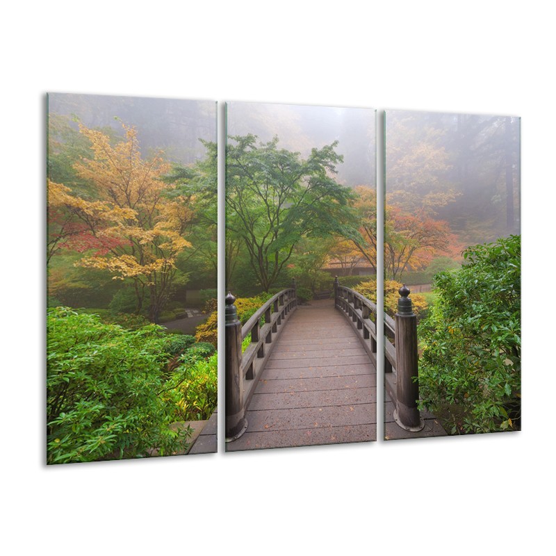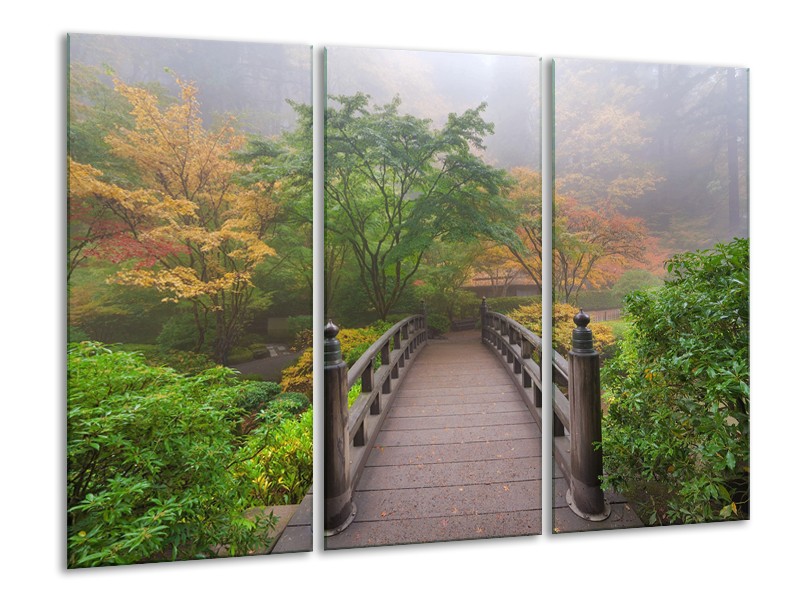 Canvas Schilderij Natuur, Brug | Groen, Bruin, Grijs | 120x80cm 3Luik