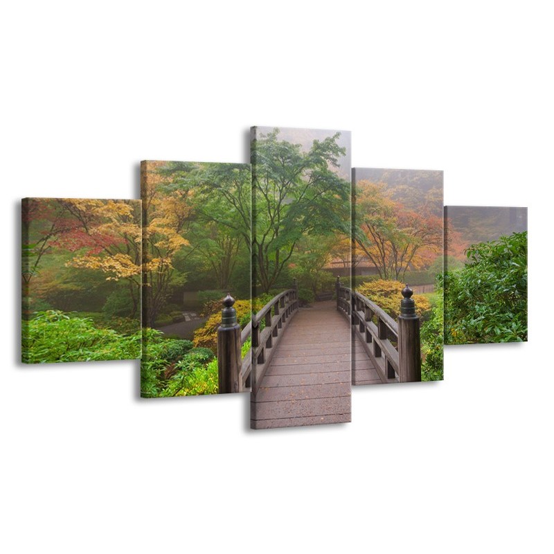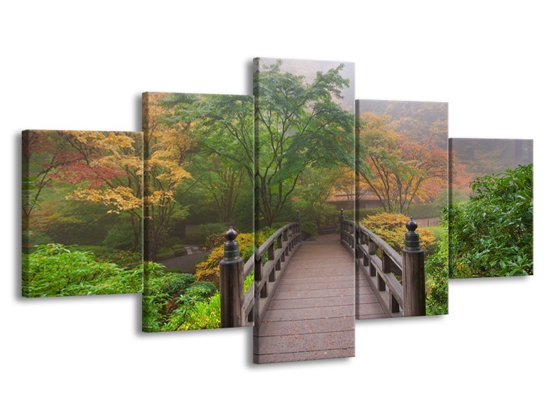 Canvas Schilderij Natuur, Brug | Groen, Bruin, Grijs | 150x80cm 5Luik
