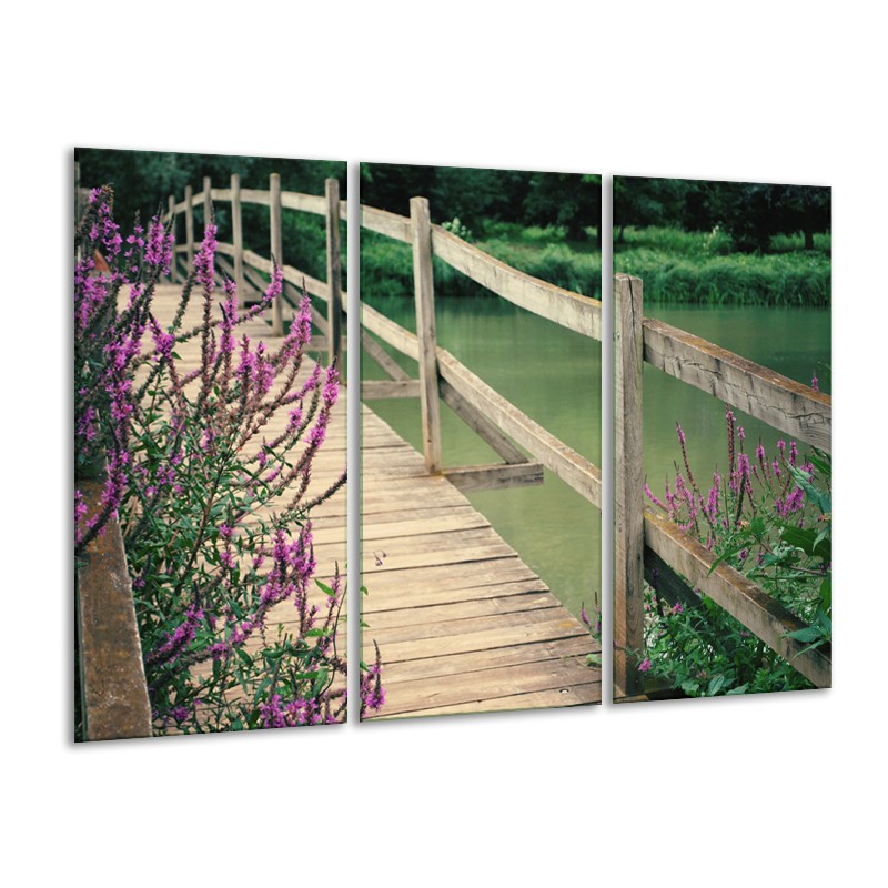 Canvas Schilderij Natuur, Brug | Groen, Paars, Grijs | 120x80cm 3Luik