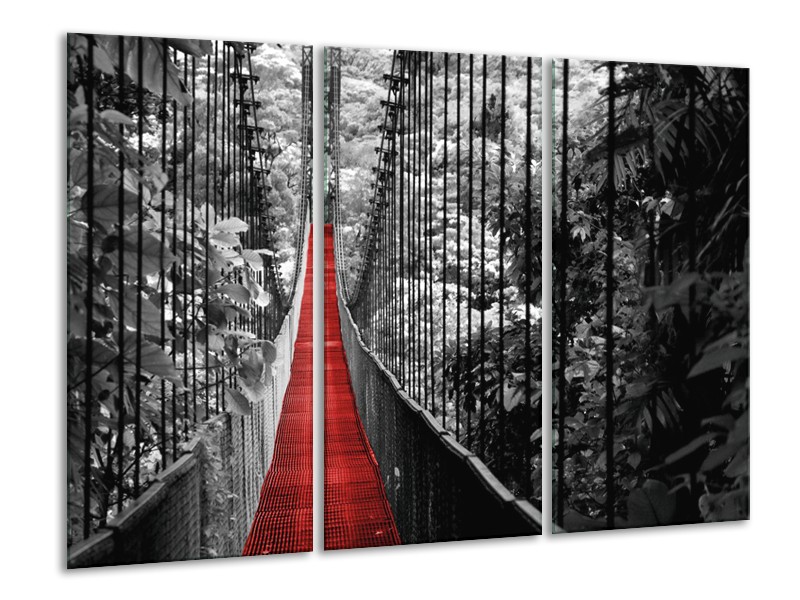 Canvas Schilderij Natuur, Brug | Zwart, Wit, Rood | 120x80cm 3Luik