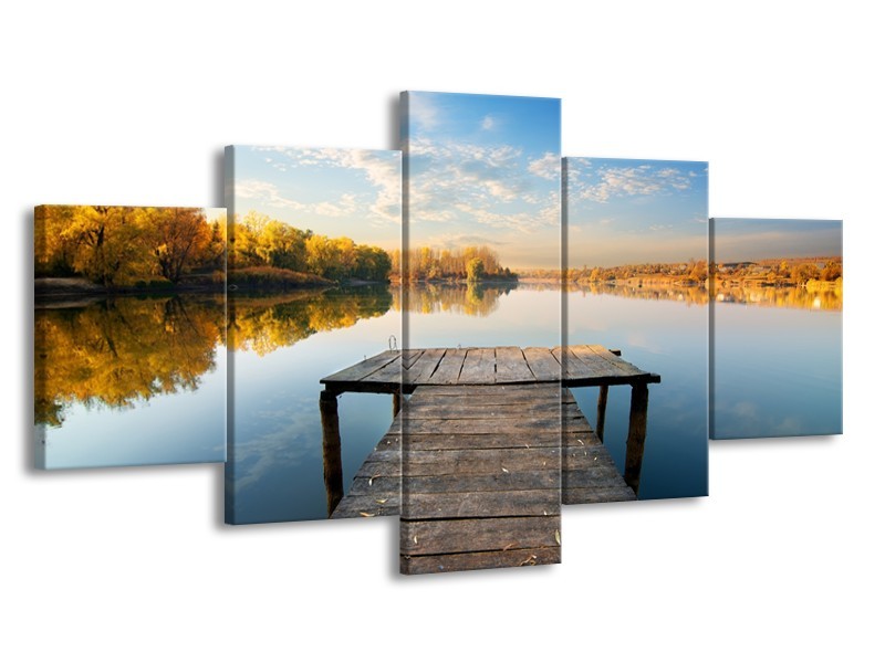Canvas Schilderij Natuur, Water | Blauw, Bruin, Grijs | 150x80cm 5Luik