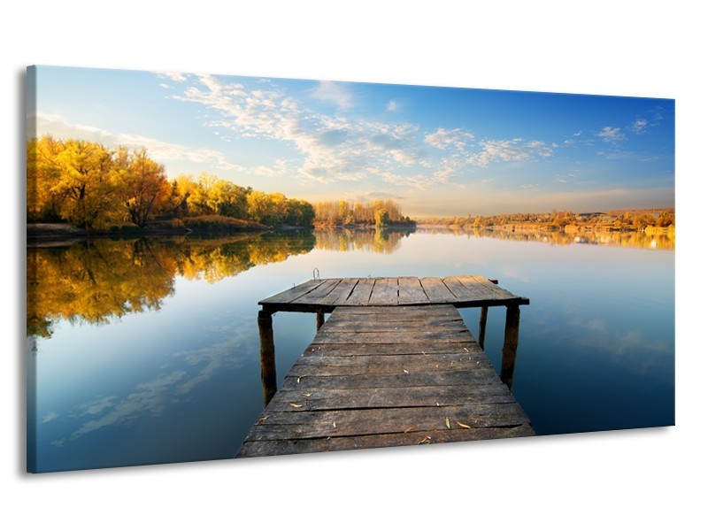 Canvas Schilderij Natuur, Water | Blauw, Bruin, Grijs | 170x90cm 1Luik