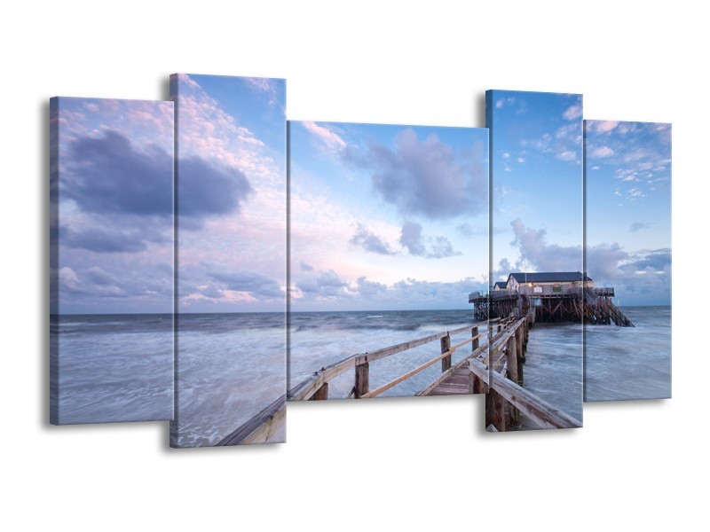 Canvas Schilderij Natuur, Water | Blauw, Grijs, Wit | 120x65cm 5Luik
